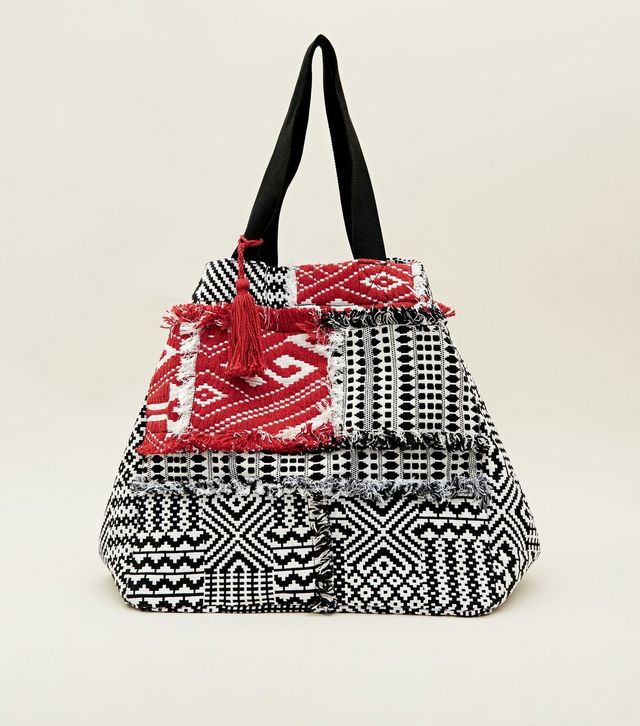 black-contrast-panel-jacquard-oversized-tote-bag